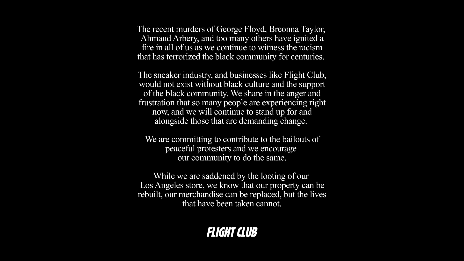 Now Eddy Lu CEO and co-founder of. The Flight Club shoe store is looted during a George Floyd protest in Los Angeles on May 30 2020The individual in the video is a random man that the corres. Sneaker Store Flight Club Reopens in LA Two Years After Being Vandalized and Looted 7202022 123500 AM The sneaker consignment store has quietly opened its doors.
